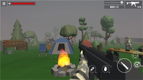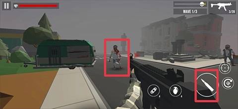 2、在游戏里,可通过左侧屏幕移动来操控方向,右侧的子弹按钮用于发射弹药击杀僵尸。