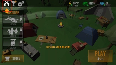 1、第一步,打开僵尸启示录这款游戏,接着点击游戏界面左上角的枪支图标。