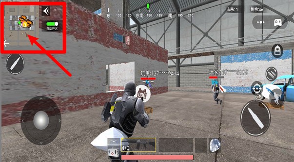 1.界面左上角显示小地图和自动开火按钮,玩家可以通过小地图快速确认敌人位置和整体战场动态。