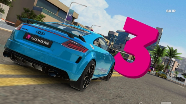 2. 在游戏正式开始之前,屏幕上会播放一段动画,全方位展示赛车的样子,若您不想观看,点击屏幕右上角即可跳过该动画。