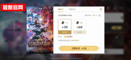 ● 畅玩卡:测试期间提供30元/15天与60元/30天两个档位。