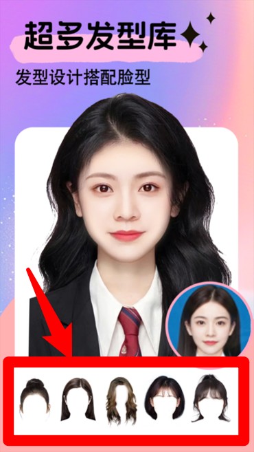 4、发型库功能支持试戴多种发型,结合脸型智能匹配,便于挑选最合适的造型方案。