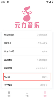 2. 我们进入到首页点击【我的】,然后选择【导入源】!