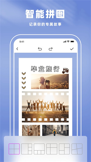 尝试照片网格拼图、自由拼图、剪贴簿以及图片画框