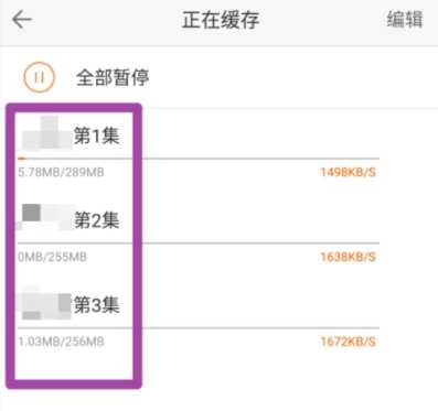 4在软件的缓存中心,你可以查看正在缓存或已经缓存完成的视频,并通过右上角的编辑选项来进行管理。