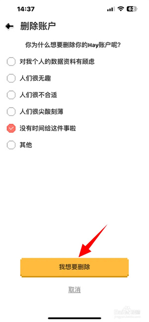点选删除原因,点击“我想要删除”。
