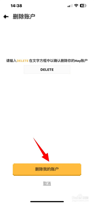 最后在上方文字框中输入“DELETE”,再点击“删除我的账户”即可。