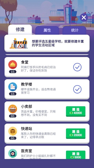 记住,虽然建造物品可以提升我们的收益,但这并不是我们最需要关注的重点。作为校长,应该时刻留意学生们的状况,查看“学生属性”。学生有四种不同的需求,如果这些需求得不到满足,他们可能会感到饥饿、生病,甚至退学。