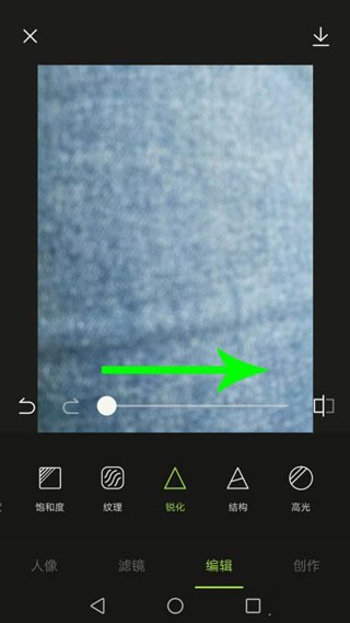 3、优化完毕以后向左滑动工具栏,点击“锐化”。