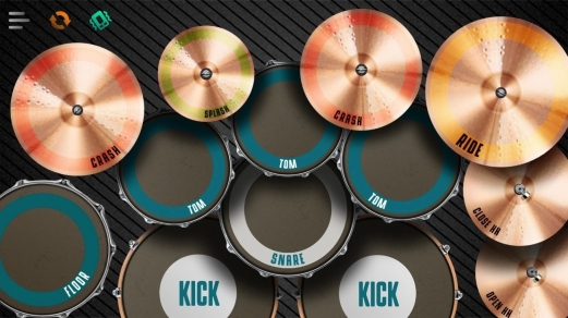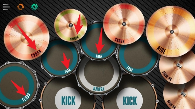 1启动 App 后,你会看到一个完整的架子鼓界面。点击不同的鼓件,比如踩镲(Crash)、中鼓(Tom)和军鼓(Snare)等,可以发出真实的打击声音。
