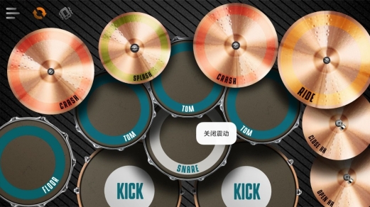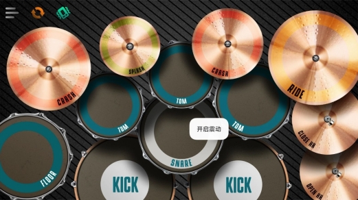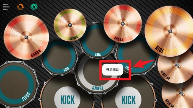 3. 点击鼓组中间出现的“开启震动”选项,可以启动振动反馈功能,使打鼓时更具现场感和节奏感。