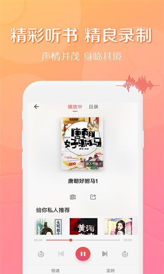 4、【语音朗读】提供细腻的人声朗读,并有多种音色可选,让你解放双眼,随时随地享受听小说的乐趣!
