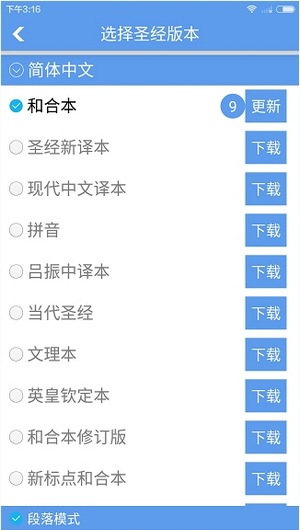 2、在下方你可以选择不同的圣经版本,并选择性地阅读其中的章节。