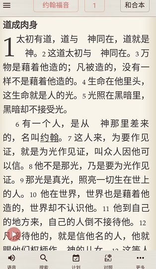 用户仅需点击对照/和合本页面右下角的音频启动按钮,就能下载音频,开启精读圣经的有声播放,操作十分便捷。