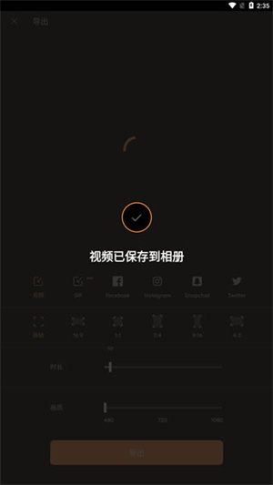 2、选择导出的视频时长,画质等