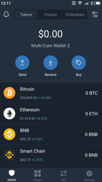 7.点击Trust Wallet中的币安币。