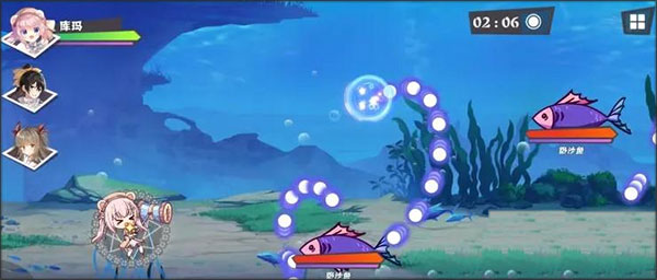 在实战当中,玩家们一开始用谢尔福,也就是绿毛那个角色使用技能提升我方角色状态加上buff,之后就可以切换到米菈上场输出了。蓝猫这名角色可以用于在前期boss弹幕还没起来的情况下先贴脸,用箭矢打一层护盾,之后再凭借高额的叠加伤害进行攻击削盾。将护盾完全击破之后,便可以上西尔维娅,也就是本期队伍中的粉毛进行远程火力持续输出。