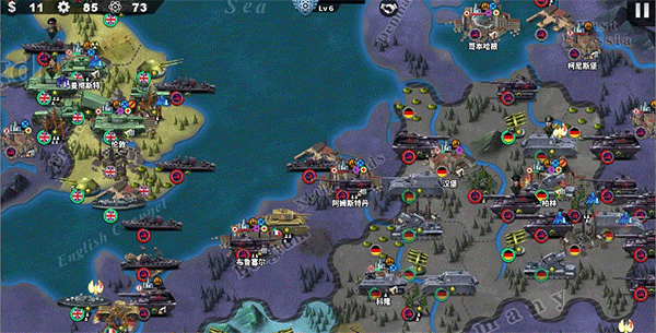 根据战场形式调整自己的战略目标,建设城市,发展科技,制造军事单位
