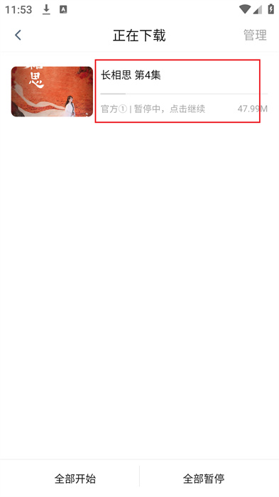 5、在该功能界面中就可以看到正在的剧集,如果不想了,就可以点击剧集,暂停。