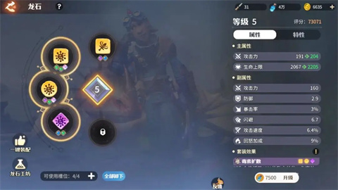 当英雄升至25级时,龙石系统将会解锁。龙石系统包含5个槽位,其中2个槽位会在25级时自动解锁,而剩下的3个槽位则分别在35级、45级和55级时解锁。当左侧的槽位装备满3件套时,英雄将获得极大的属性加成,同时也会提升领主的整体战斗力。