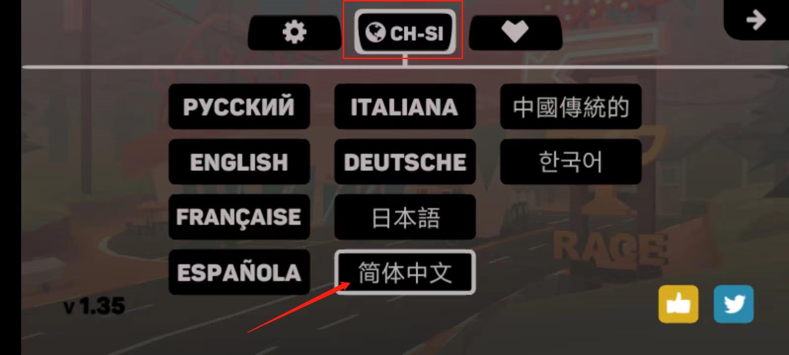 2、这里点击“简体中文”,然后点击右上角的返回箭头即可。