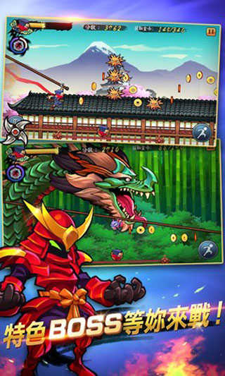 忍者冲刺(Ninja Rush)也叫火影忍者:忍者武士刀,这是一款围绕忍者展开的跑酷闯关游戏。这个游戏有着丰富的剧情内容,精彩的跑酷挑战关卡也是它的一个亮点。在游戏里,有好多不同的角色能让玩家去选,和忍者搭配的还有很有特色的武器系统。玩家能解锁更多角色,收集各种不错的武器,而且在这儿你还能带着宠物一起去完成挑战。