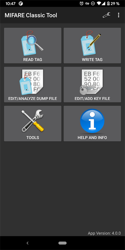 1、手机中安装MiFare Classic Tool (MCT),并开启手机的NFC