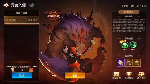 每隔一段时间,异兽首领将带领一群小怪发起攻击,我们会准备好迎接挑战,在抵御异兽的同时还能获得大量的神器碎片。这个玩法支持个人或轻度组队模式,你可以邀请好友或是公会成员一同组队对抗敌人。
