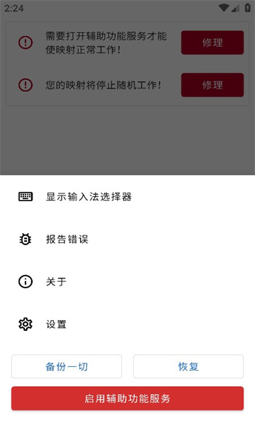 点击辅助功能服务提示旁边的修复按钮,您将可以授予键映射器运行其辅助功能服务的权限。你必须这样做,应用程序才能工作。