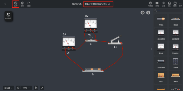 4.点击标题可以修改实验名称,将实验保存为对应的名字,点击“保存”实验,即可将实验保存到个人资源当中