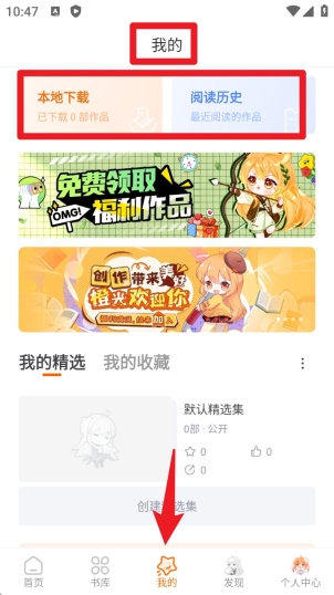 3. 前往“我的”页面,可以查看已的本地作品与最近的阅读记录,方便你快速续读或管理作品。