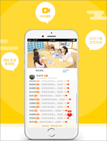 宝宝直播:开放式的远程视频直播,让家长能随时随地观看宝宝的在校动态。
