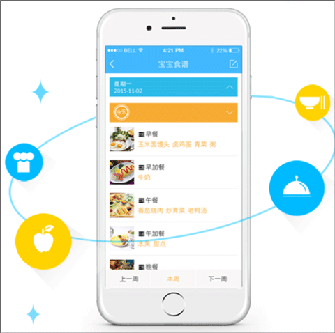 以图文形式展示宝宝每天食谱,让家长更放心、省心
