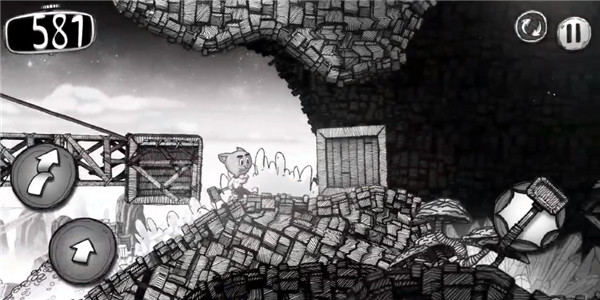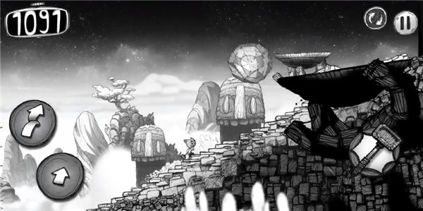 1、游戏的画面极具冲击力,黑白手绘风格为玩家构建了一个奇妙的幻想世界。