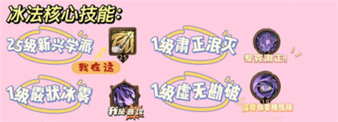 1【霰状冰雾】作为1级普攻技能,能够对全体敌人造成伤害,配合学派技能可以迅速通关。除了新兴学派的技能外,其他技能都可以只加1点,再根据个人装备情况酌情增加技能点数。