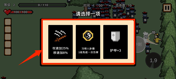 2、击败僵尸获取经验,升级时自主选择强化,专注攻击力或范围控制,打造专属流派,错误搭配可能导致后期乏力。