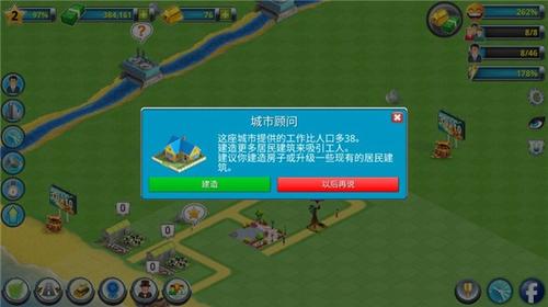 1进入游戏后,首先挑选起始地图和发展方向,然后点击空地来建造基础房屋或公共设施,从而初步构建出城市的轮廓。