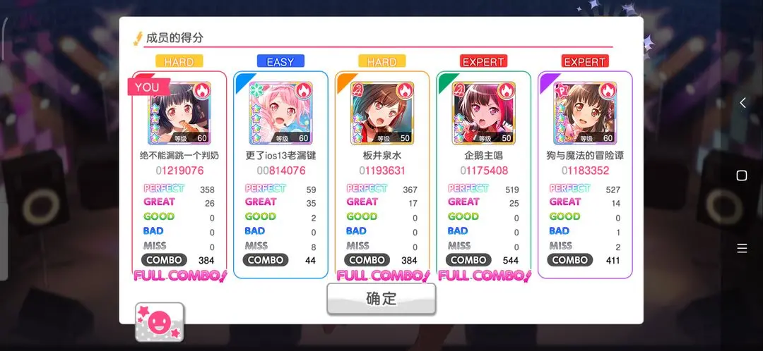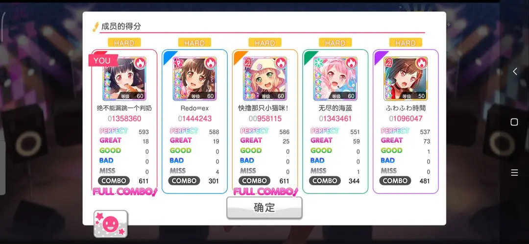4.队伍内其他成员多次出现表情对骂。你懂的,就是那种“不愧是你”之类的,常见于ID冲突,选歌冲突。