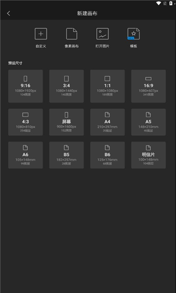 2、新建画布可自定义画布和创建像素画布,还可根据图片创建画布:导入需要临摹的图画,即可自动适配相同像素的画布;