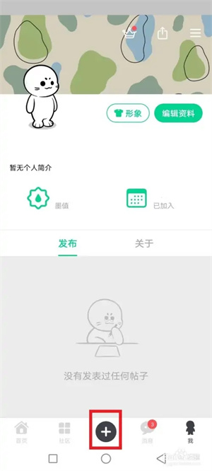 3、在该社区中点击底部+按钮。