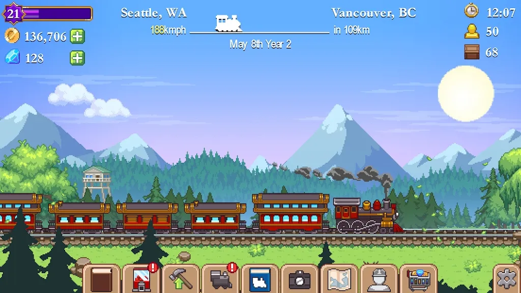 7.接下来,您可以进入“升级”功能。通过升级,您可以赚取更多的金币,提高速度或增加火车可搭载的车厢数量。选定要升级的项目后,需要等待一段时间才能完成。如果您觉得等待时间过长,可以使用宝石来加速升级过程。