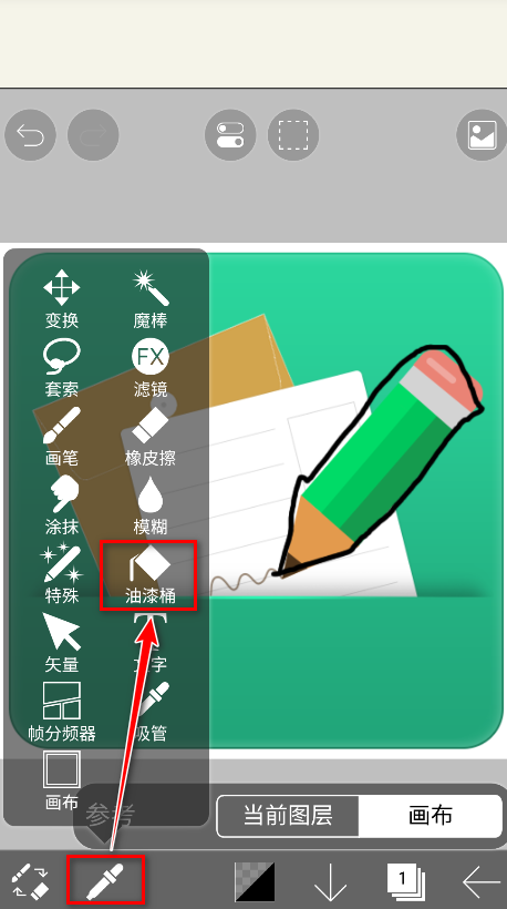-刷子,橡皮擦,指尖工具,模煳工具,填充和吸管功能