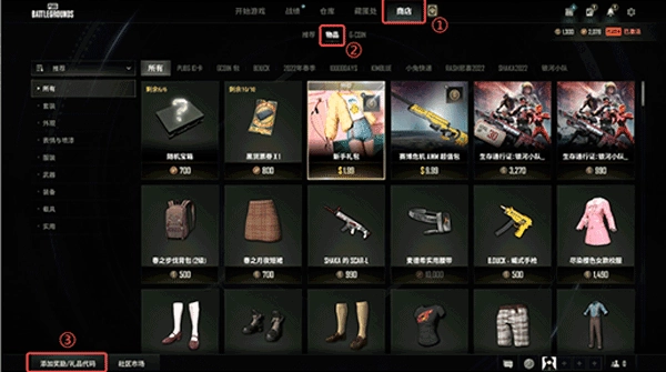 第一步:按顺序点击“商店”“物品”“添加奖励/礼物代码”按钮。