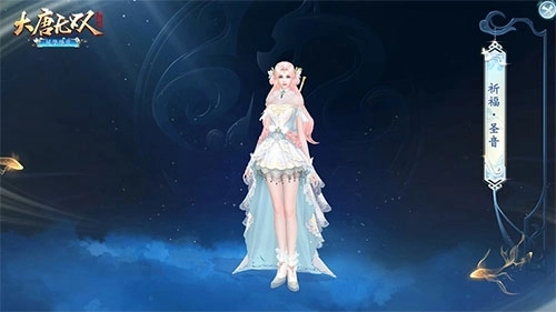 在这浪漫时分,女子穿上“祈福·圣音,”一袭白色露肩长裙,美丽的锁骨若隐若现,裙子质地轻薄,裙摆微蓬俏皮可爱,露出少女洁白修长的美腿,步态轻盈柔美,踏着长安城街道向心爱之人而去,祝福穿越时空。