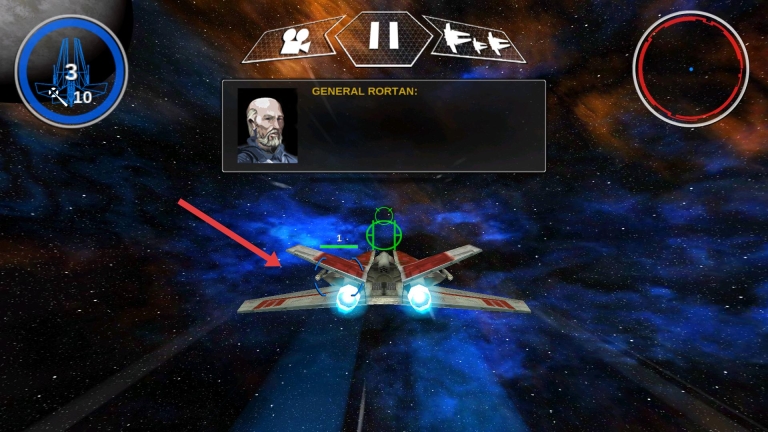 2、战斗时,操控战机躲避敌方攻击,按指引锁定目标,利用武器射击,留意上方对话获取任务信息,完成阶段目标推进剧情。