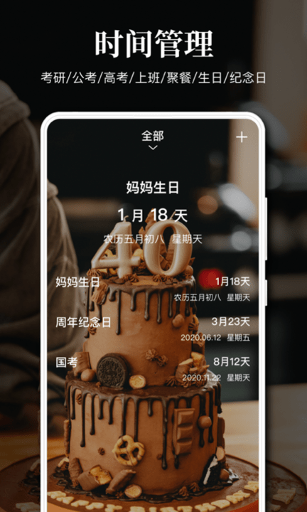 【重要日期记录】 纪念日、生日、高考倒计时、日程安排等特别的日子;