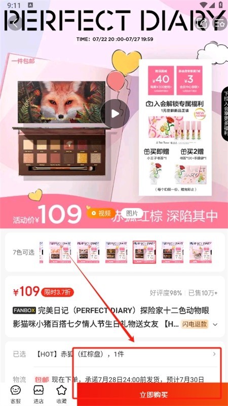 3、选择想要购买的商品点进详情页可以查看更多商品信息,然后点击下方的立即购买