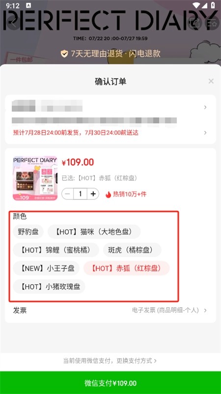 4、选择好自己的商品颜色等信息,确认好自己的收货地址