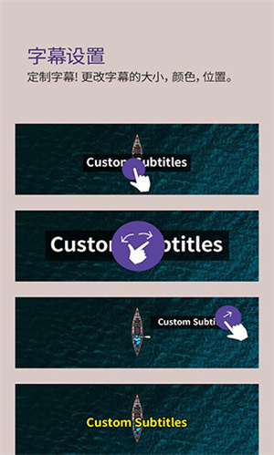 在播放画面支援手控速度调整功能,加减速 0.5 倍至 4.0 倍,或是利用滑动方式快转、倒转、调整音量。