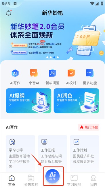 新华妙笔是一款功能强大且实用的AI智能写作助手。它基于先进的AI技术,为用户提供包括AI写作与自动生成、续写及校对纠错等功能,同时还能提供详尽和权威的参考资料。软件内还包含了多种法定公文和应用模板供用户根据个人需求选用。此外,该软件还设有学习园地版块,让用户能够学到丰富的知识。欢迎有需求的朋友前来体验!